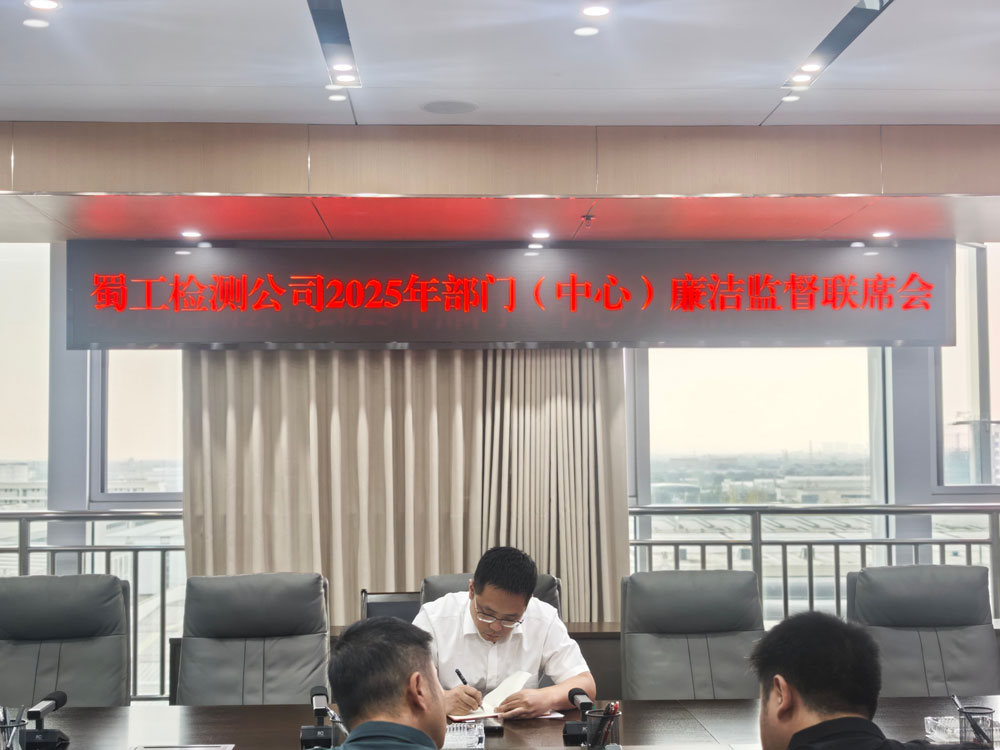 10月16日,蜀工检测公司召开2025年度部门(中心)廉洁监督联席会,党总支副书记、纪律检查委员、工会主席周立主持会议,各部门(中心)负责人参会。会议集中学习了交建集团《职能部门业务监督信息沟通工作规定》,并组织各部门围绕廉洁风险点动态梳理及防控措施更新进行汇报。