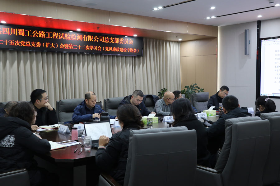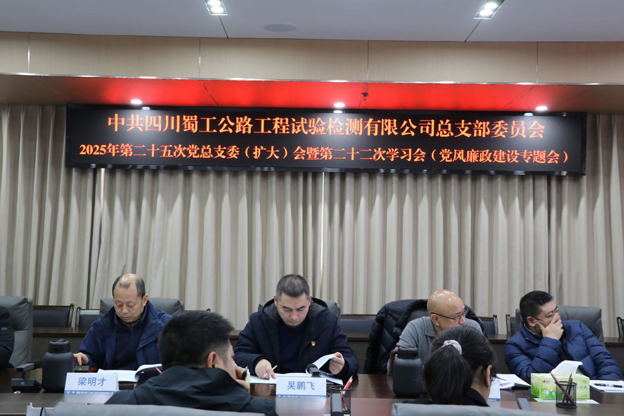 会议集中传达学习了《中共中央办公厅 国务院办公厅印发〈关于做好2026年元旦春节期间有关工作的通知〉》,通报了四川路桥纪委《关于2025年下半年违反中央八项规定精神典型案例的通报》,观看了警示教育片《镜鉴—权殇》,审议通过了蜀工检测公司2025年政治生态分析研判报告和2025年党风廉政建设主体责任落实情况报告,听取了领导班子成员2025年党风廉政建设“一岗双责”履职情况汇报。